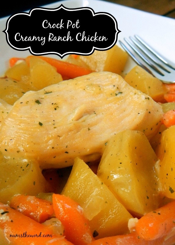 Web to the sleeve of the crockpot, combine the ranch seasoning mix, cream of chicken soup, and chicken stock. It's easy to sneak extra veggies in (think peas, green beans, etc). Cover the slow cooker and cook on low for 6 hours.